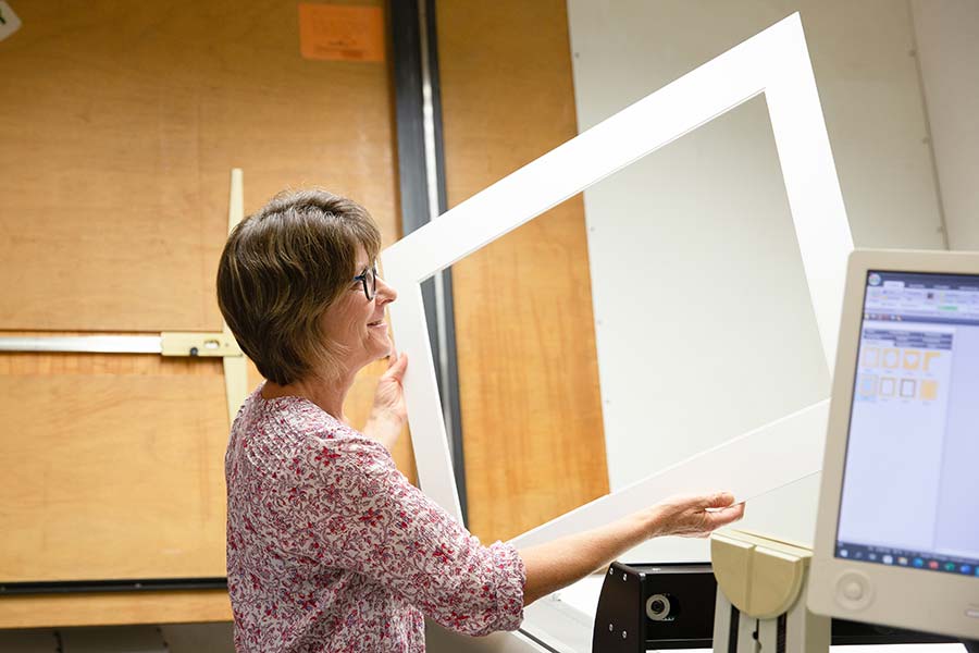 Our computer-controlled passe-partout machine makes possible almost everything even in large formats, also multiple passe-partouts in different thicknesses and colours with diverse cuts which perfectly match the corresponding picture.
